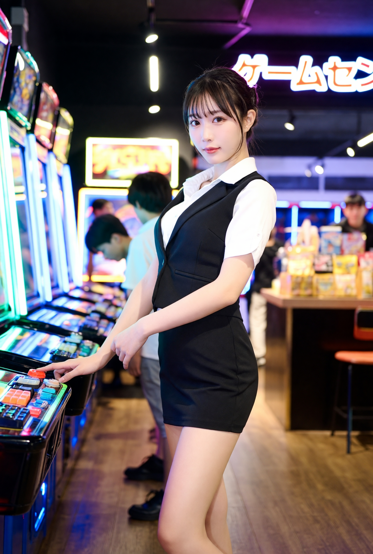 AIエロ画像 ゲーセンでのエロシーン パンチラ